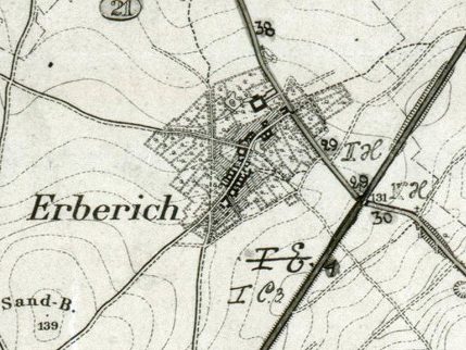 Erberich lag auf halbem Wege zwischen Fronhoven und Aldenhoven, und bildete den nördlichsten Ort des Kirchspiel Lohn. Der Erbericher Hof wurde um 1150 n. Chr. erbaut, und bildete den Kern des Dorfes, der landwirtschaftlich geprägt von unzähligen Obstbäumen umrandet wurde. Ein Großteil der Bewohner wurde nach Fronhoven umgesiedelt.