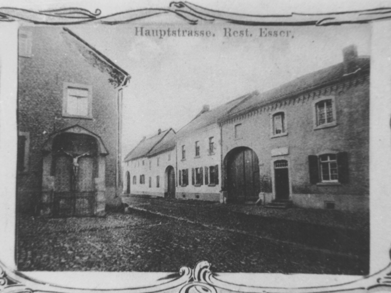 oben: r. Restaurant Haus Esser, l. Denkmal am Hof Müller; Foto Franz Wings